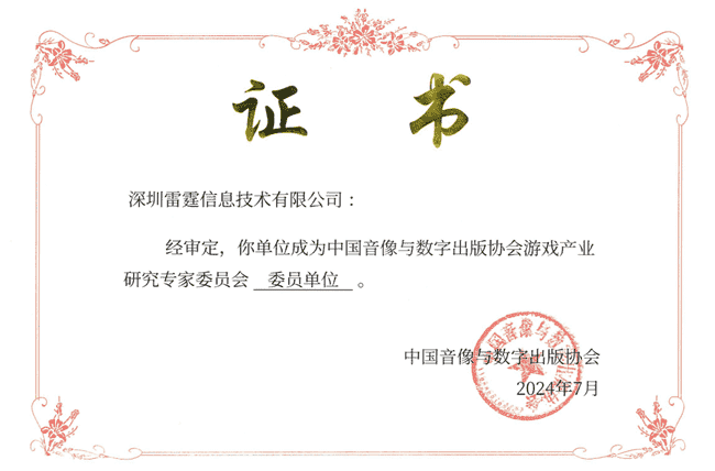 2024年7月25日,,,,中国音像与数字出版协会游戏产业研究专家委员会(以下简称“中国音数协游戏专委会”)成立大会在上海市召开,,,厦门yaxin111网络技术股份有限公司及其子公司深圳雷霆信息技术有限公司(以下统称“公司”)正式成为中国音数协游戏专委会委员单位。。。