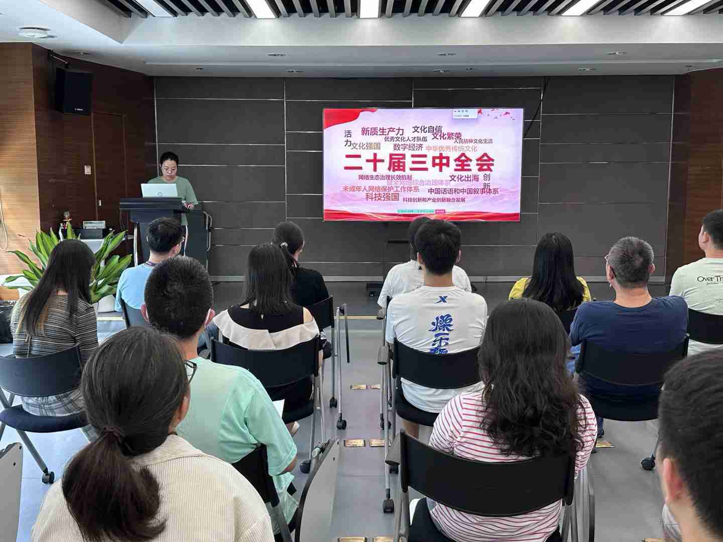 与会人员深入学习《决定》内容。。。党的二十届三中全会提出必须增强文化自信,,,发展社会主义先进文化,,,弘扬革命文化,,传承中华优秀传统文化,,加快适应信息技术迅猛发展新形势,,,构建更有效力的国际传播体系,,,这为广大文化产业工作者指明了奋斗方向。。。。