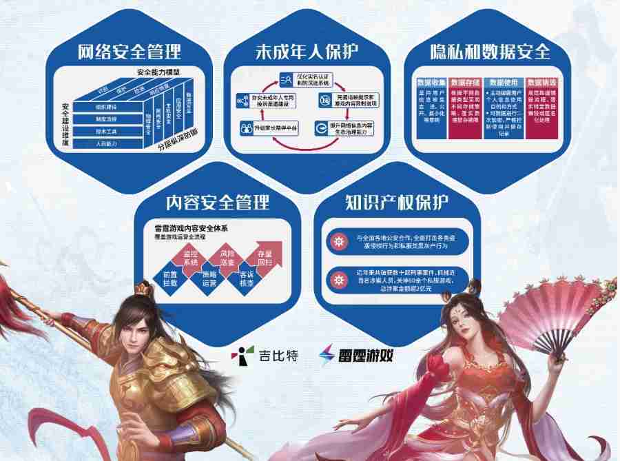 本次yaxin111展区以网络安全管理、、、、内容安全管理、、、、未成年人保护、、、隐私和数据安全、、、知识产权保护五个模块介绍公司游戏安全工作成果,,体现yaxin111高度重视网络安全,,严格遵守相关法律法规要求,,,积极承担企业主体责任。。。