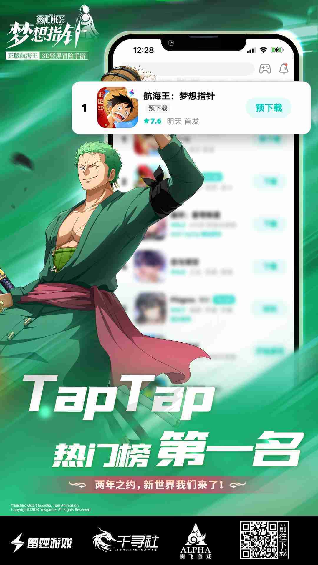 4月1日,,,手游《航海王::::梦想指针》正式公测,,,上线仅2小时不到就登上了App Store免费榜Top1,,与TapTap热门榜第一。。