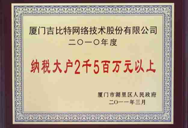 日前,,,公司被厦门市湖里区人民政府授予了“2010年纳税大户”的荣誉称号,,,,充分体现了公司一贯合法纳税、、、、诚信经营的良好企业社会公民行为。。。。