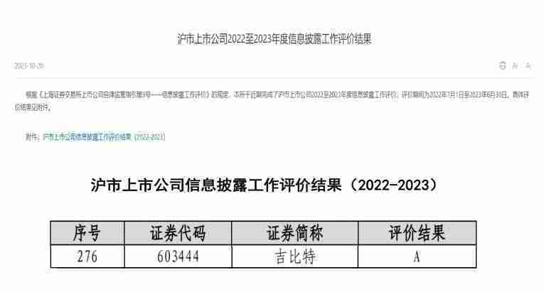 近日,,上海证券交易所发布2022-2023年度信息披露工作评价结果。。。。yaxin111(股票代码:::603444)凭借规范的公司治理、、高质量的信息披露以及良好的投资者关系管理再次荣获信息披露工作A级评价,,公司连续两年获此殊荣。。。